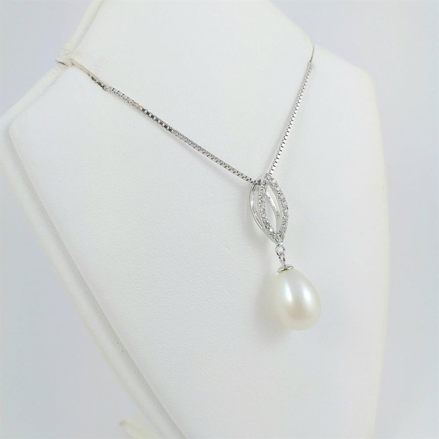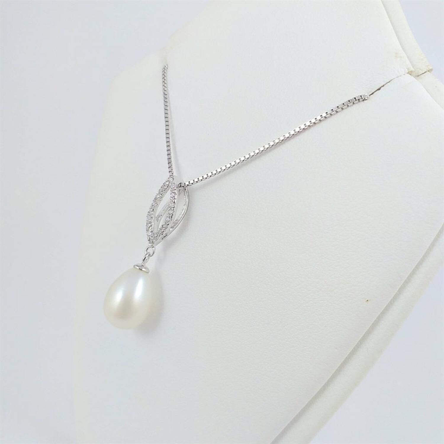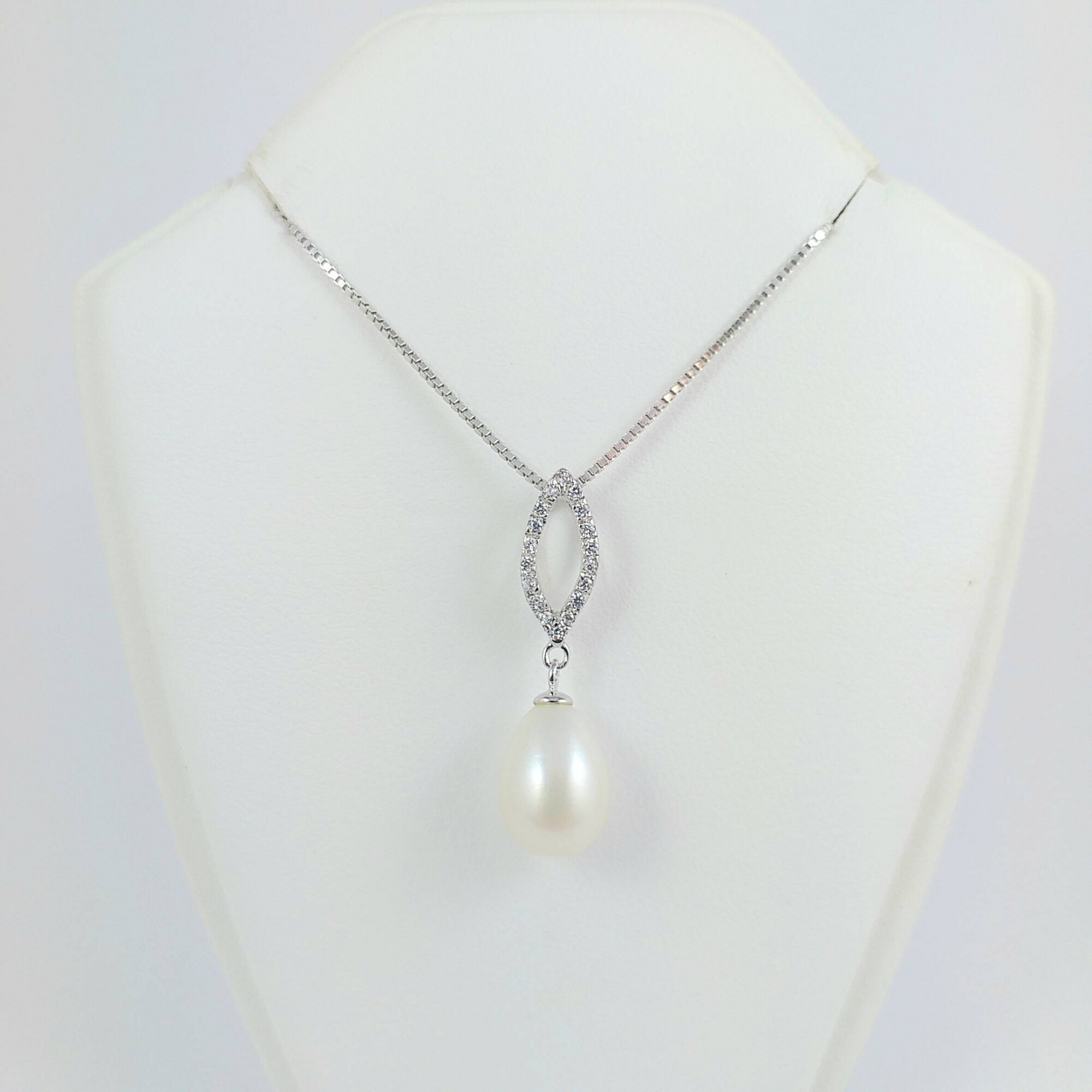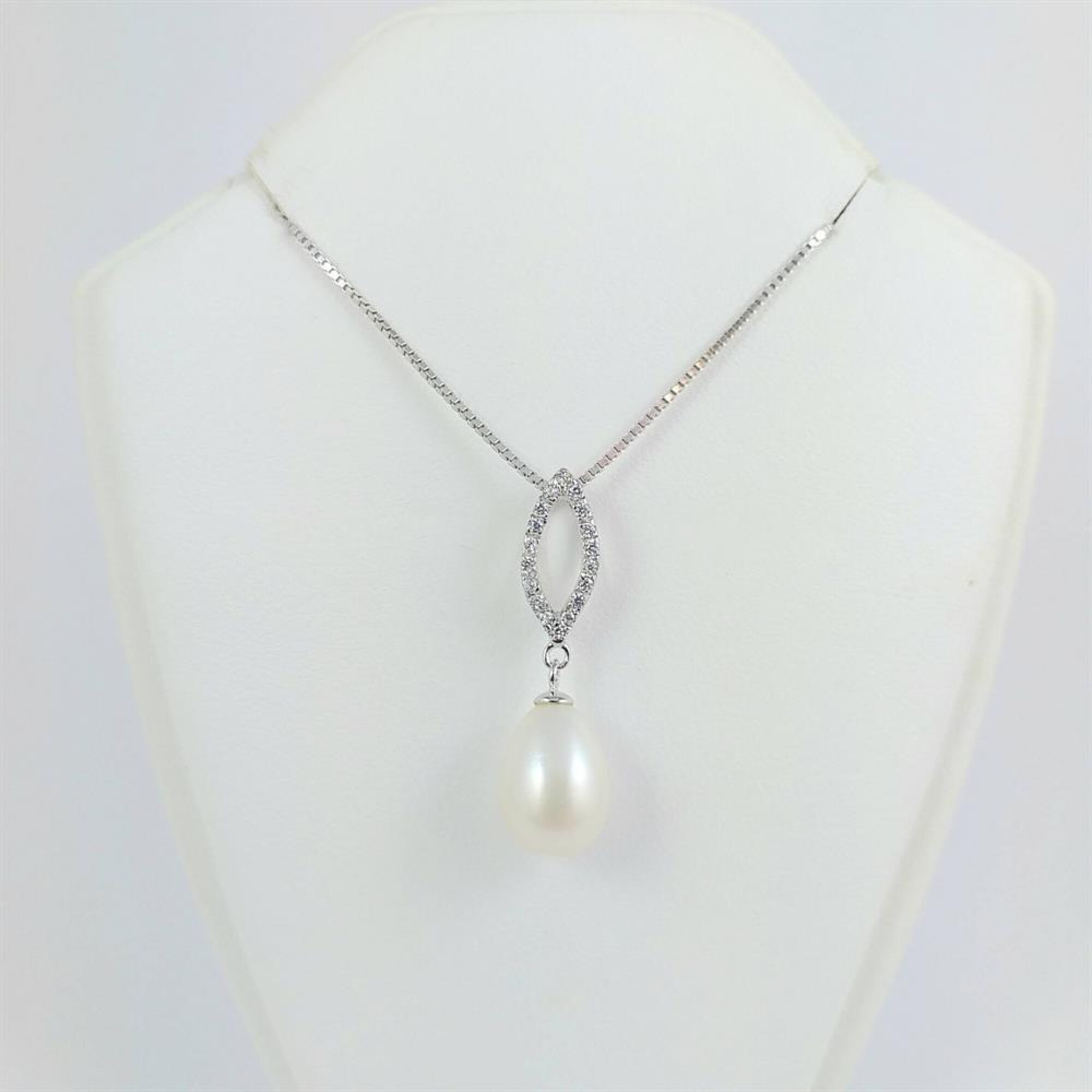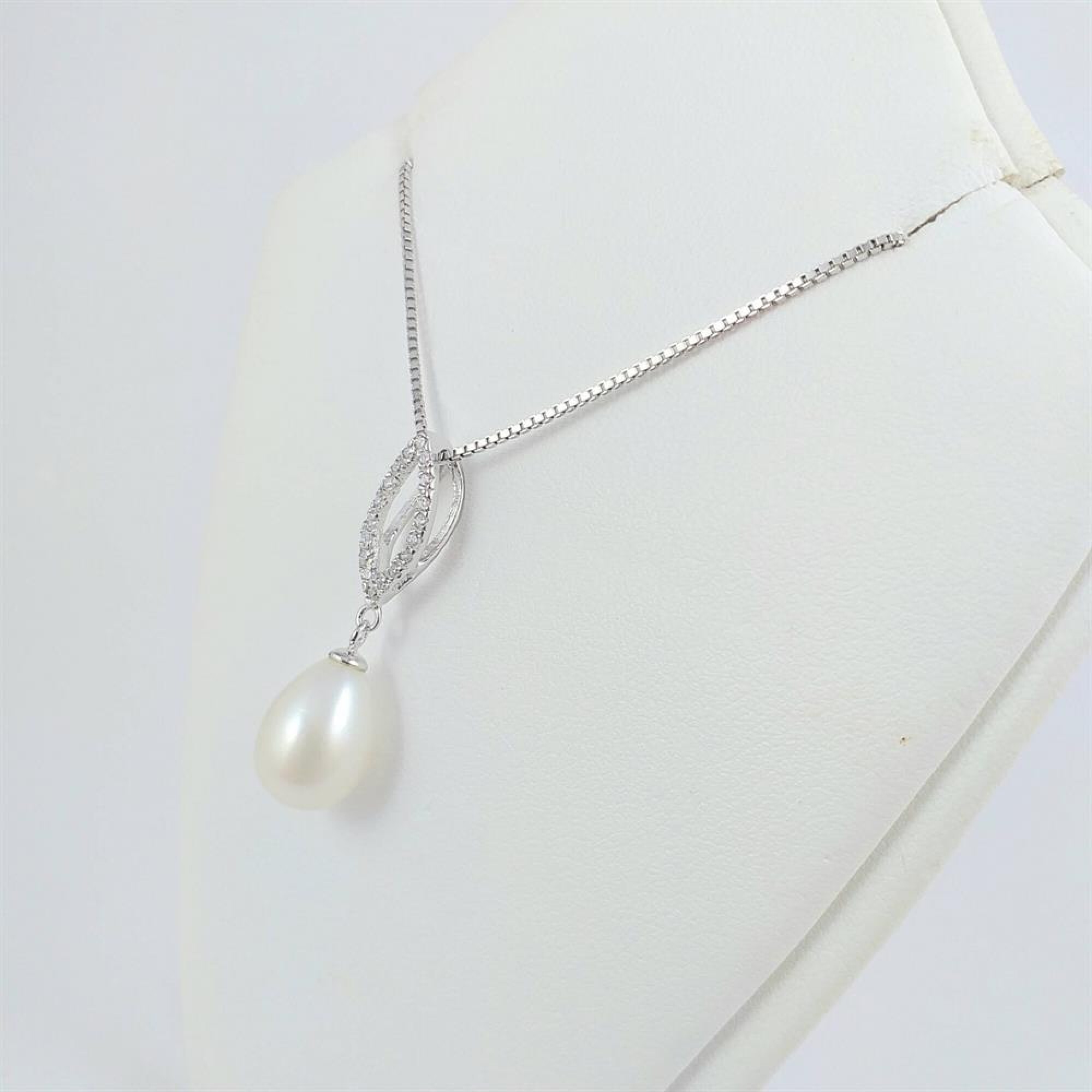 Colgante de plata 925 con perla de rio lagrima de 8 mm * 12 mm y hoja de circonias de 13 mm * 6 mm.